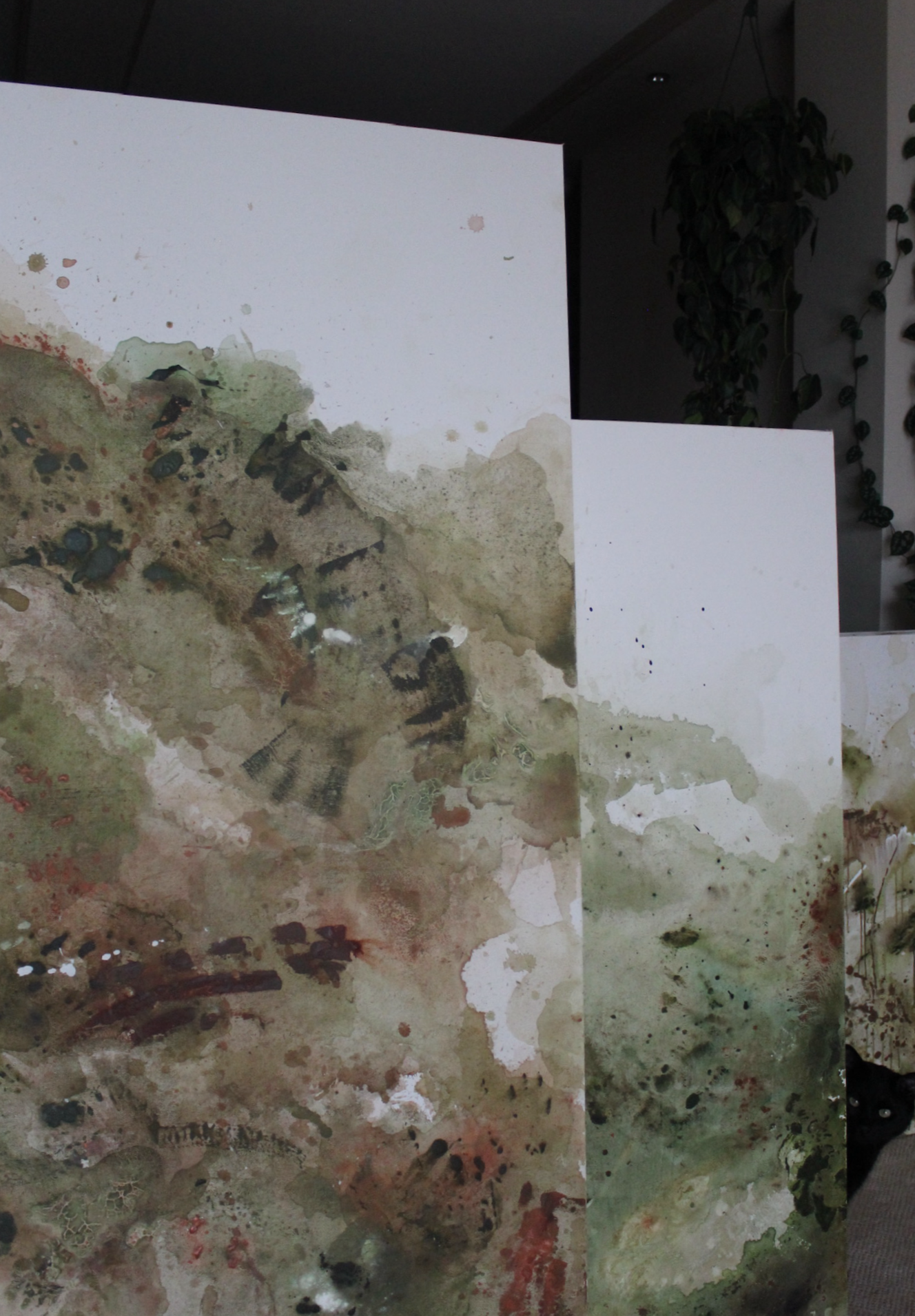 I create commissioned abstract paintings for residential and commercial interiors, collaborating closely with interior designers to support the atmosphere of a space.